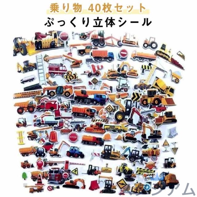 学生 乗り物 キッズ 乗り物 バス ぷっくりシール 男性 ぷくぷくシール 飛行機 トラック 働く車 子供 男の子 保育園 幼稚園 小学生 中学生 高校生 40枚セット 立体 友達 プレゼント 誕生日 プレゼント ステッカー クラフト ノート 飾り かわいい かっこいい カラフル