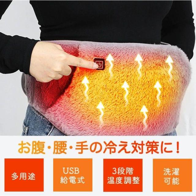 【三段階温度調節/USB給電式】腹巻き 電熱暖かベルト 腰腹部兼用 カイロ ハンドウォーマー 暖腰ベルト 洗える あったかグッズ 1.5m延長USBケーブル 低消費電力