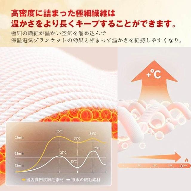 極細の織維が温かい空気を溜め込んで保温電気ブランケットの効果と相まって温かさを維持しやすくなり。