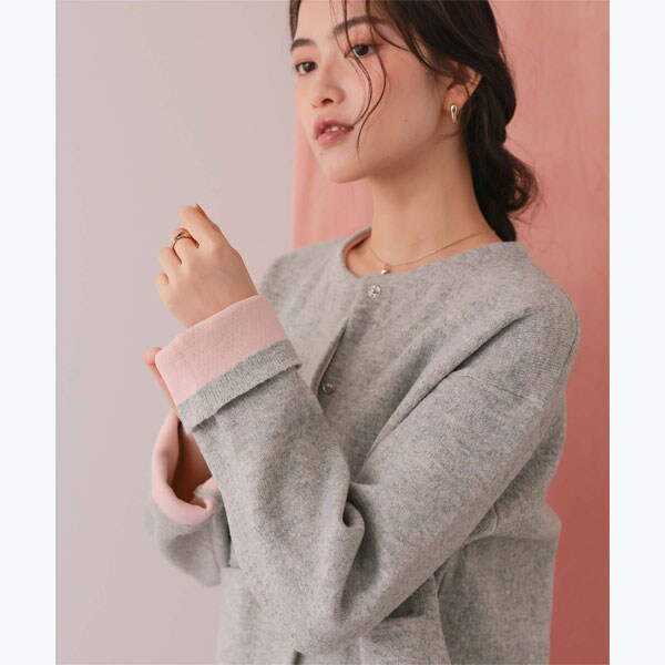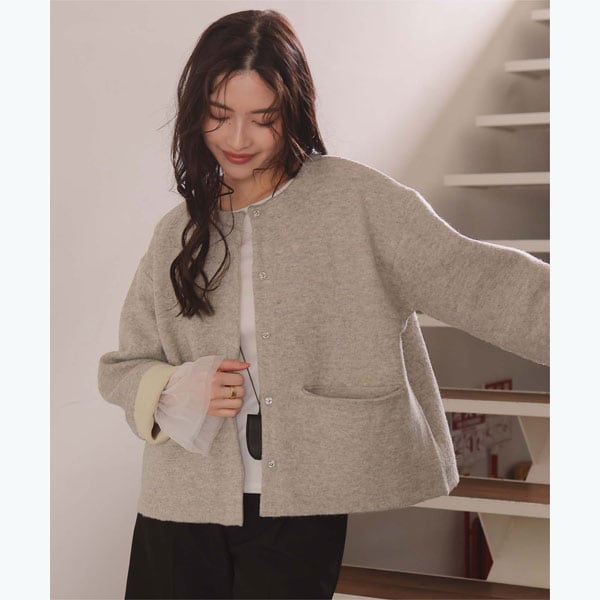 ・編地裏の配色カラーが目を惹く、大人のこなれ感漂うニットアウター