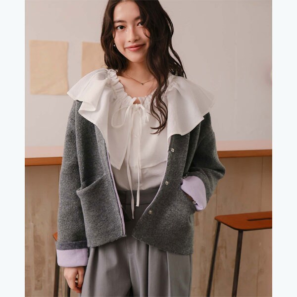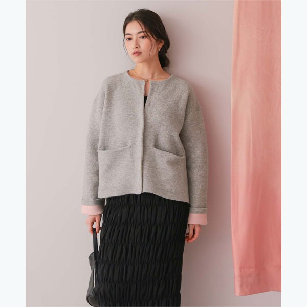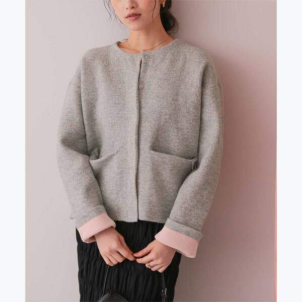 ・表の編地はベーシックなカラー展開で着やすく、色々なスタイリングに入れられる万能アウター