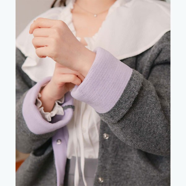 配色デザインニットコート/カーディガン