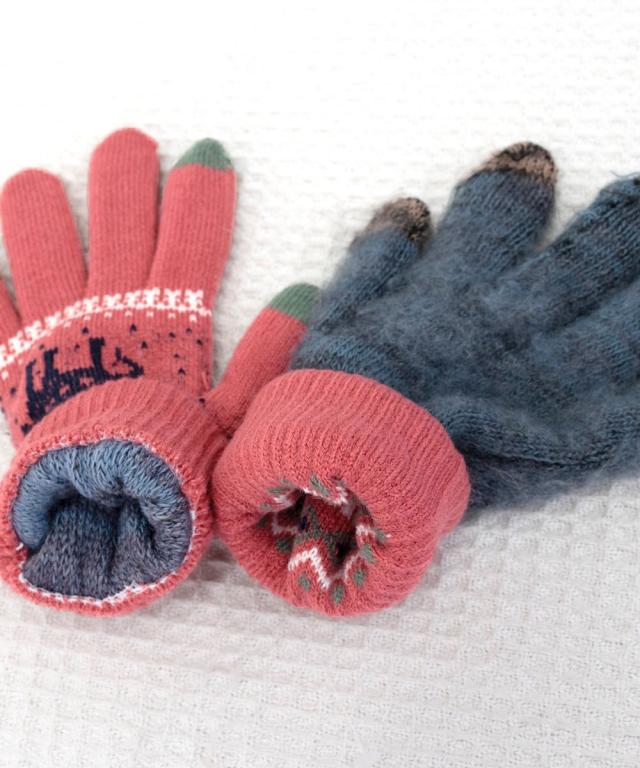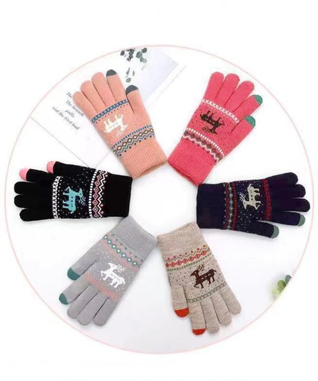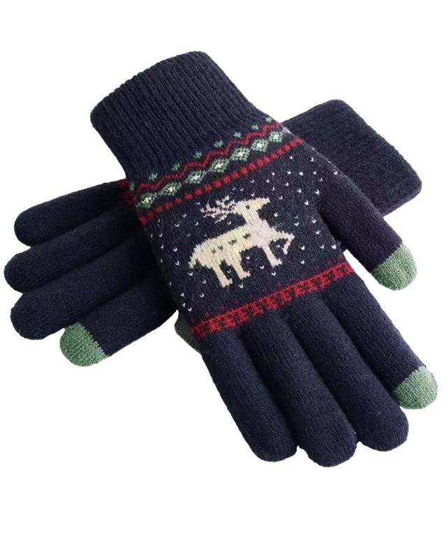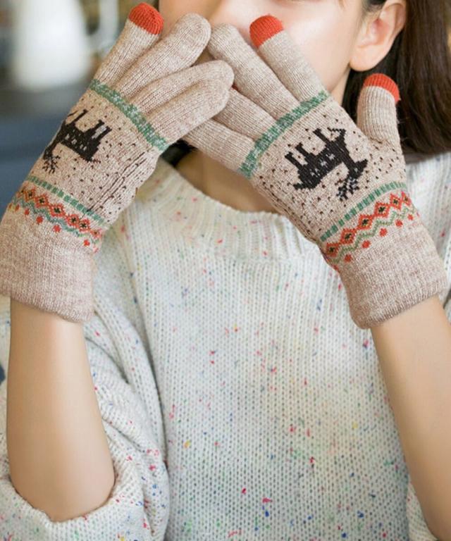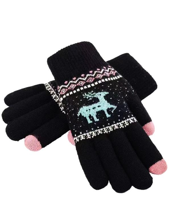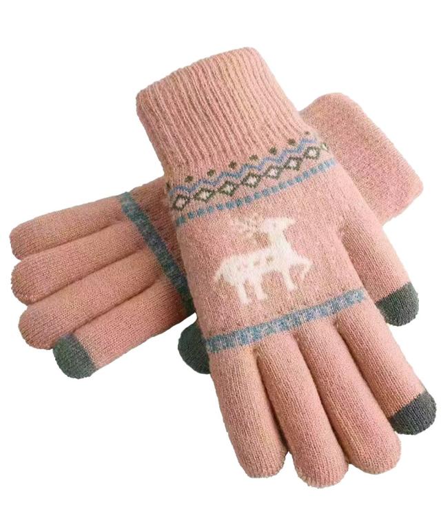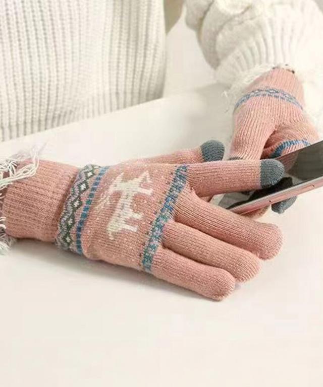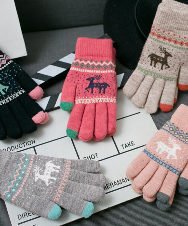 トナカイ柄のノルディックデザインが可愛い、裏起毛仕様のタッチパネル対応5本指ニット手袋。