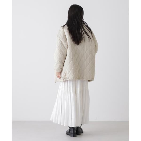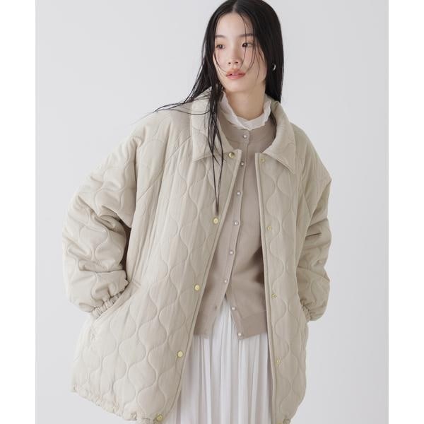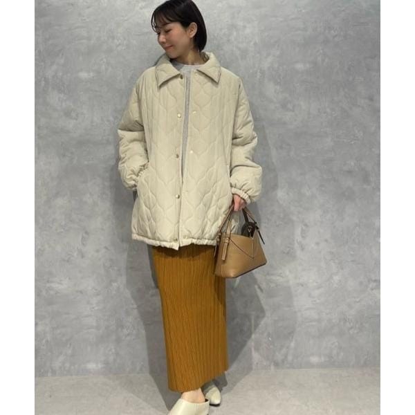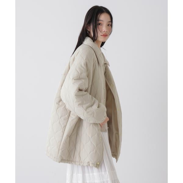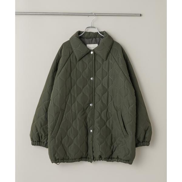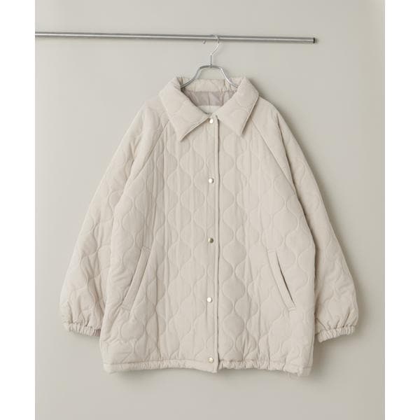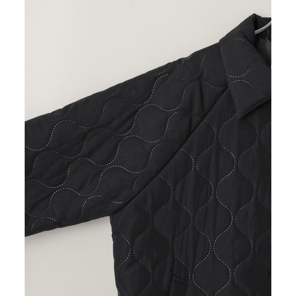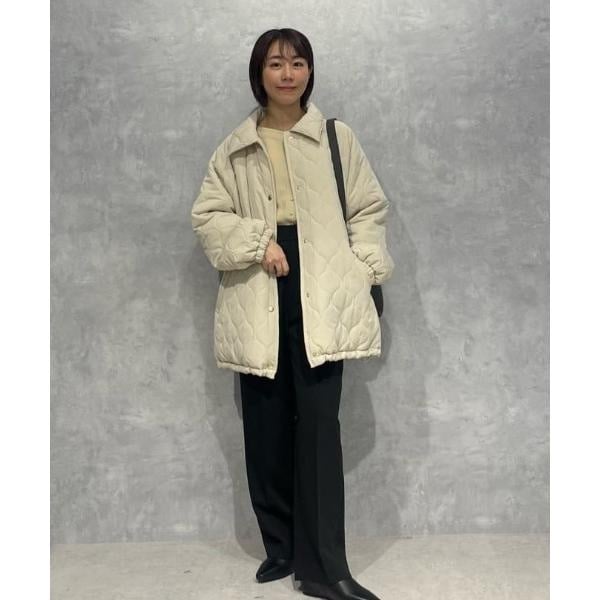 ひょうたん柄の圧着キルトが目を惹く、表情豊かなラグランミドルコート。ボリューム感のある丸みのあるシルエットが、カジュアルさを抑え、フェミニンで女性らしい雰囲気に。裾のドローコードでシルエット調整も可能で、その日の気分やスタイリングに合わせてアレンジが楽しめます。