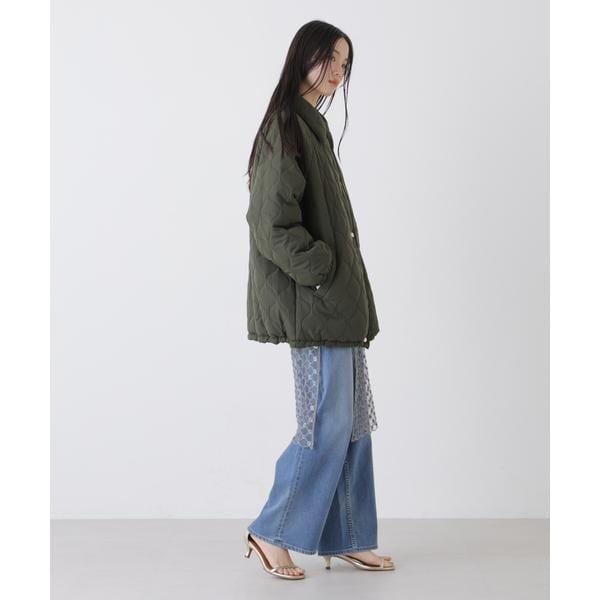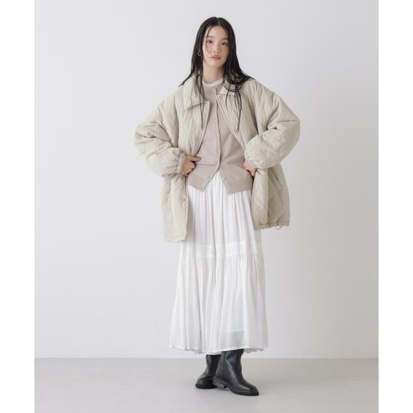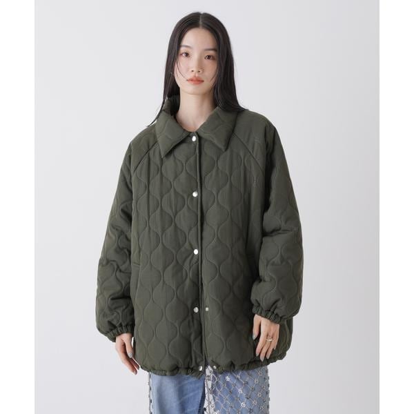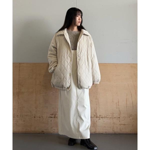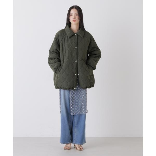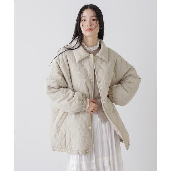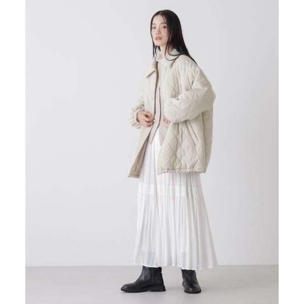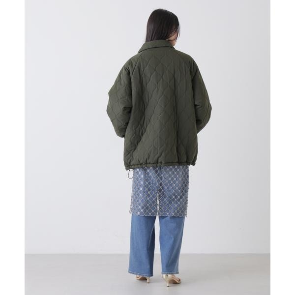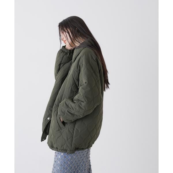 ひょうたん柄の圧着キルトが目を惹く、表情豊かなラグランミドルコート。ボリューム感のある丸みのあるシルエットが、カジュアルさを抑え、フェミニンで女性らしい雰囲気に。裾のドローコードでシルエット調整も可能で、その日の気分やスタイリングに合わせてアレンジが楽しめます。