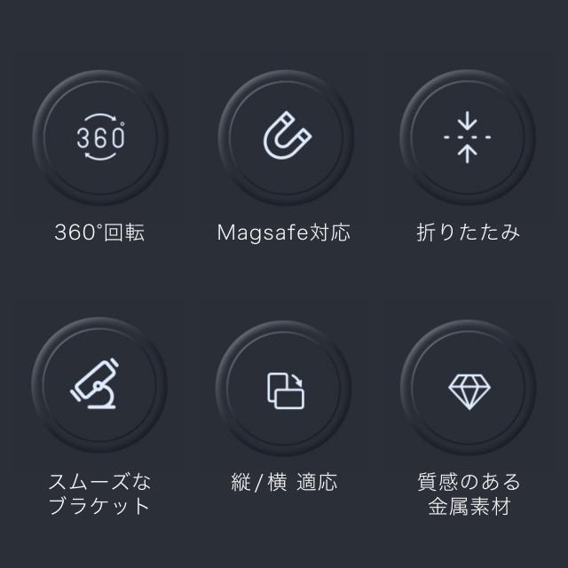 | 360°回転 Magsafe対応 折り畳み スムーズなブラケット 縦/横適応 質感のある金属素材 |