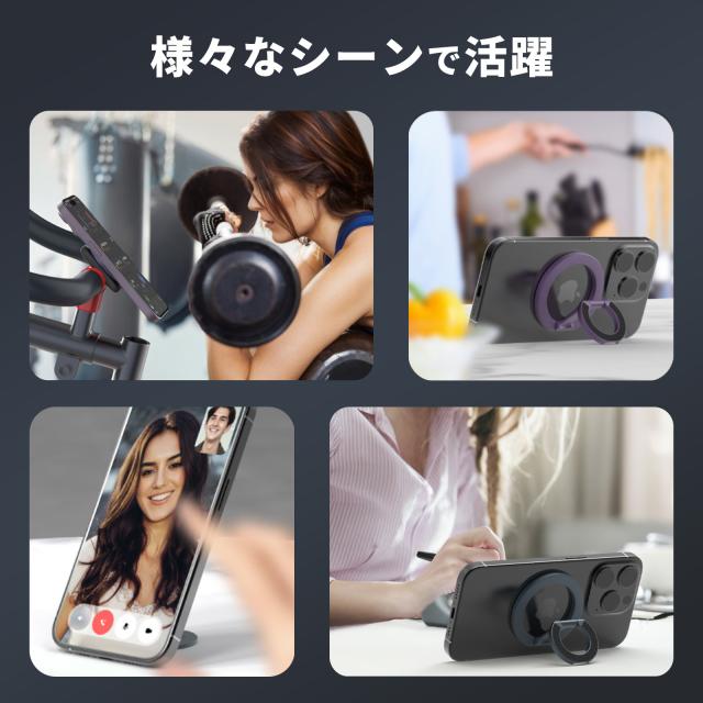 [ 使い方自由スマホスタンド ] 【 優れた5つの ポイント 】 (1) 縦・横どちらも使える自由なスタンド (2) マグネットで簡単・強力固定 (3) 角度を細かく調整できるZ型ブラケット (4) 薄くて軽く、持ち運びしやすい (5) ほぼ全てのスマホに対応 【縦横自由!どんな場面でも見やすい】 縦置き・横置きを自由に切り替えできます。動画視聴、オンライン通話、料理中のレシピ確認、勉強など、いろいろな場面で快適に使えるスマホスタンドです。 【ピタッとくっつく強力マグネット】 強力な両面磁気アレイを採用。マグネットで簡単に取り付けられ、しっかり固定されます。使いたい場所にサッと設置でき、ズレにくく安心です。 【好きな角度にピタリ調整】 二軸折りのZ型ブラケットで、角度は無段階調整。首や手が疲れにくい角度に合わせられ、長時間の使用でも快適に使えます。 【薄型でかさばらない】 薄くてスリムなデザインなので、バッグやポケットに入れても邪魔になりません。外出先や旅行にも気軽に持ち運べます。 【Apple以外もOK!全モデル対応】 Apple製品以外のスマートフォンでも使用可能。マグセーフ非対応機種は、付属のメタルリングを背面に貼るだけで使えます。 |