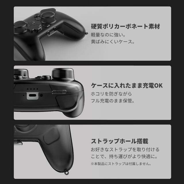 【 優れた5つのポイント 】 (1) 軽くて強いポリカーボネート素材 (2) ケースに入れたまま充電できる (3) ホコリを防いできれいに保管 (4) ストラップホール付きで持ち運び便利 (5) プロコン専用設計で全面保護 【 軽いのにとても強い!安心ハードカバー 】 軽量なポリカーボネート素材を使用。毎日の持ち運びでも負担にならず、落としても衝撃をしっかり吸収します。きばみにくく、長くきれいに使えます。 【 ホコリを防いでピカピカ保管 】 ケースがコントローラー全体を包み込み、ホコリや汚れから守ります。使わない時もフル充電のまま安心して保管できます。 【 ストラップで持ち運びがもっと楽 】 ストラップホール付きなので、お気に入りのストラップを取り付け可能。バッグから取り出しやすく、落下防止にも役立ちます。 【 プロコン専用でぴったりフィット 】 Switch2 Proコントローラー専用設計。形に合わせて作られているため、装着しやすく、つぶれにくい耐衝撃構造で全面を守ります。 【 入れたまま充電OKでラクラク 】 ケースを外さなくても充電ができる設計。遊び終わったらそのまま充電できるので、手間がかからずとても便利です。 |