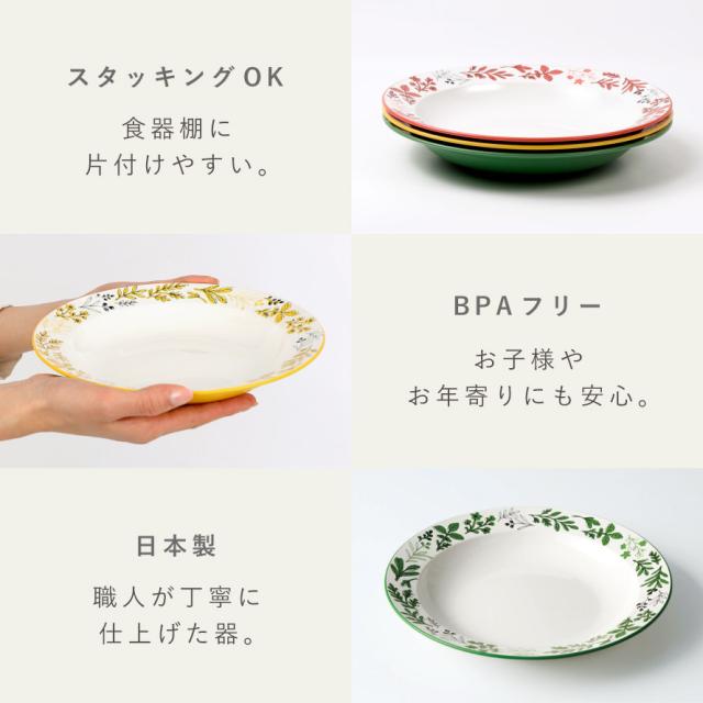 皿 24センチ,食洗機対応 皿,皿 割れない,皿,プレート,お皿,食器,日本製,食洗機対応,食洗機,レンジ対応,電子レンジ,レンジ,BPAフリー,BPA,フリー,割れない食器,割れない,割れにくい,安全,軽い,軽量,プラスチック,樹脂,樹脂製,スタッキング,重ねられる,省スペース,カフェ,カフェ風,北欧,おしゃれ,お洒落,オシャレ,かわいい,可愛い,おもてなし,来客,ゲスト,パーティー,ホームパーティー,ボタニカル,ナチュラル,植物,自然,葉,ハーブ,北欧調,カラフル,レッド,赤,グリーン,緑,イエロー,黄色,