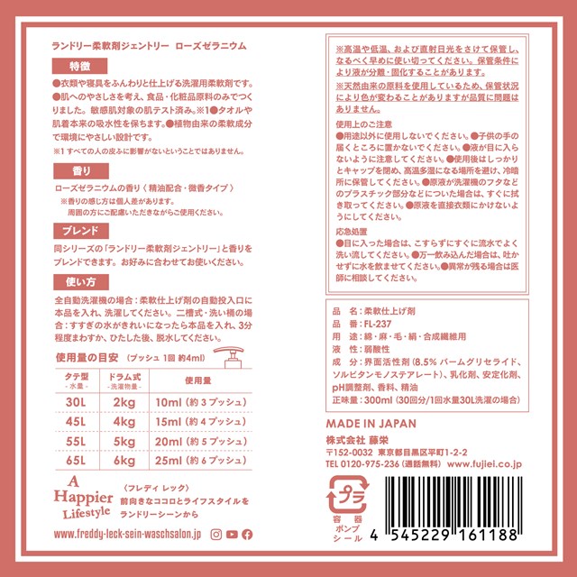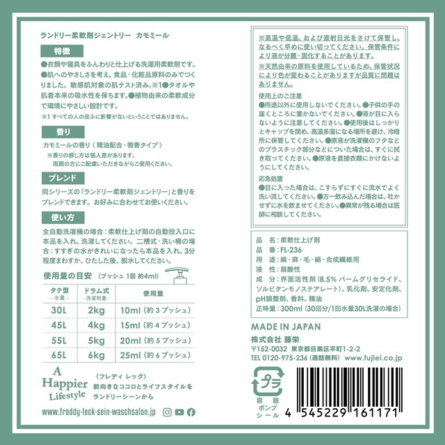 FREDDY LECK ランドリー柔軟剤 300ml GENTLY ラベンダー カモミール ローズゼラニウム FL-235 FL-236 FL-237【フレディレック ジェントリー 洗濯用柔軟剤 洗濯柔軟剤 ランドリー柔軟剤 弱酸性 バレンタイン ホワイトデー 母の日 父の日 クリスマス xmas 藤栄 FUJIEI】
