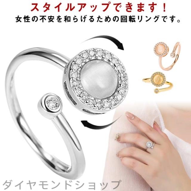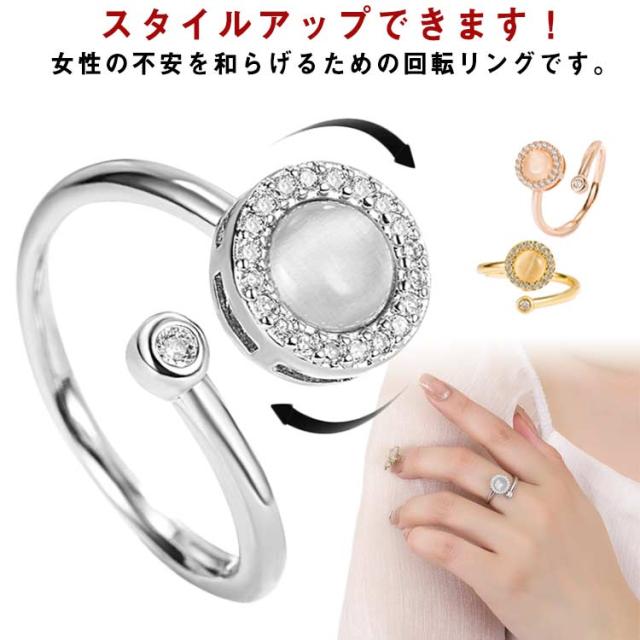 指輪 回転 フィジェットリング ムーンストーン 回転リング ストレス解消リング レディース 調節可能 スピナーリング オープン リング ウェディング 金属 ストレス解消 色あせにくい 心配 退屈 指輪 プレゼント バレンタインデー お洒落