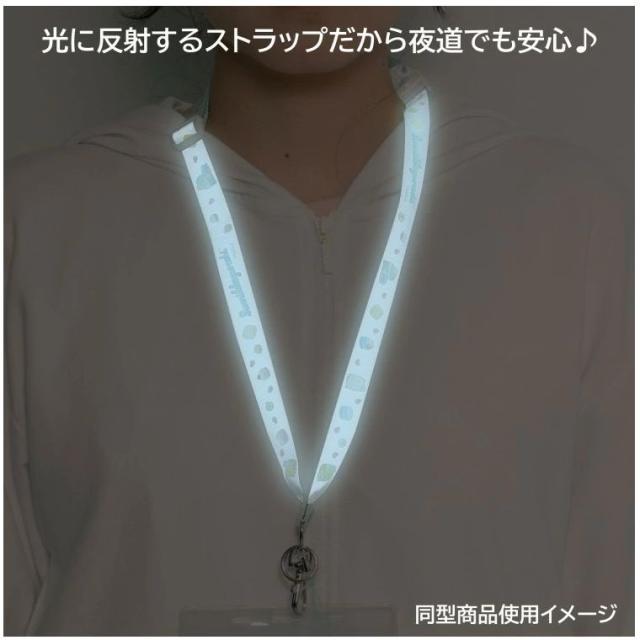 すみっコぐらしのキャラクターがかわいくデザインされたネックストラップです。リフレクター素材を使用しており、車のライトや街灯の光を受けるとパッと反射。夜道や暗い場所でも存在をしっかりアピールでき、安心感がぐっと高まります。