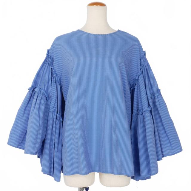 【中古】エムエスジーエム MSGM フレアスリーブ ブラウス シャツ 長袖 ストライプ 40 青 ブルー レディース