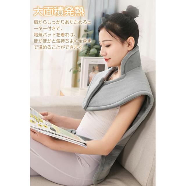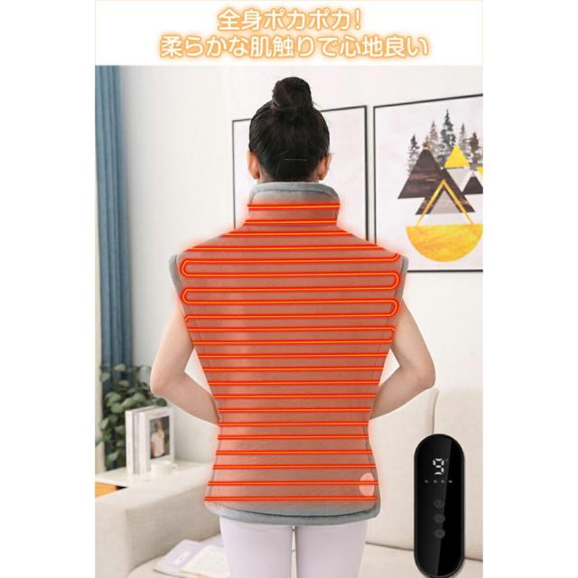 肩からしっかりあたためるヒーター付きで、電気パッドを着れば、ぽかぽかと気持ちよく全身まで温めることができます。高速加熱技術を備えた電熱線は首と肩を迅速且つ均一的にあたためます。寒い冬でも冷えをすばやく解消します。