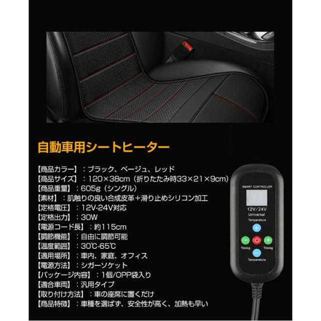 【製品名】: シートヒーター 後付け 車用 12V/24V 1人掛け用
