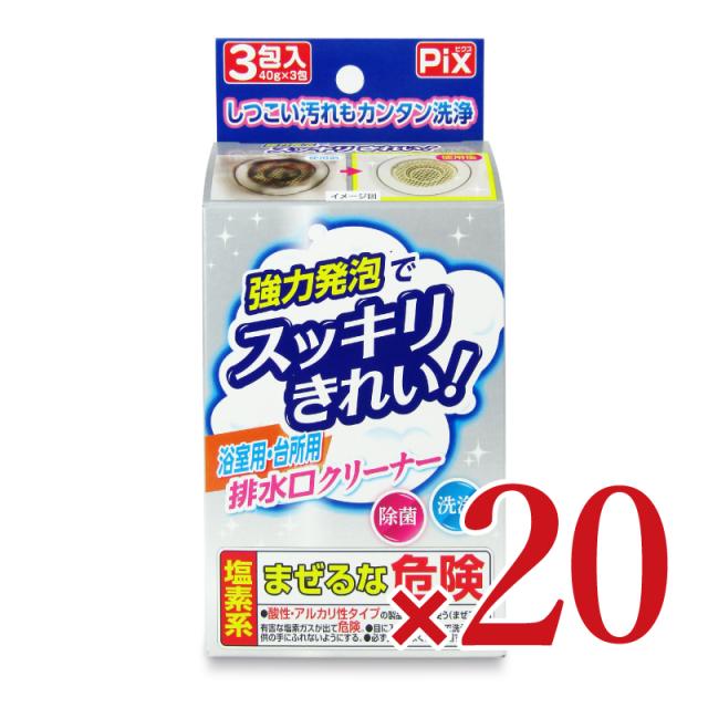 ライオンケミカル Pix 浴室用・台所用 排水口クリーナー 3包入×20個 強力発泡でスッキリきれい!