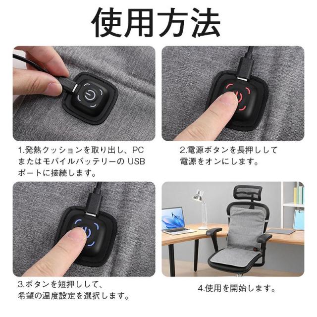 ホットマット ヒーターマット 一人用 3段階温度調整 USB式 電気マット 椅子 寒さ対策グッズ 電気座布団