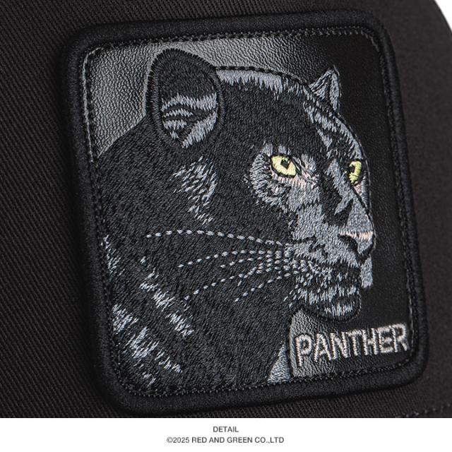 動物の「黒ヒョウ/Black Panther」と掛けた“力強さと美しさ“を象徴する「Panther」と共に、「黒ヒョウ」モチーフのレザーパッチをドロップした、高品質のメッシュキャップ。