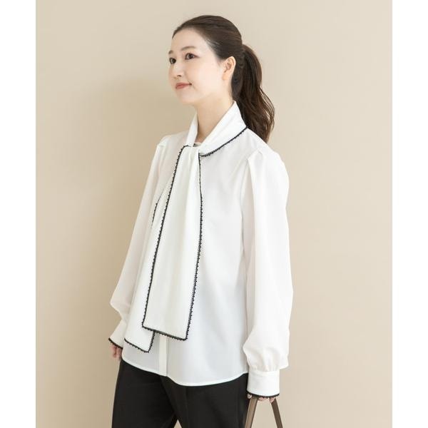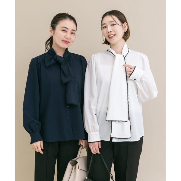 『WEB/一部店舗限定』トリミングボウタイブラウス