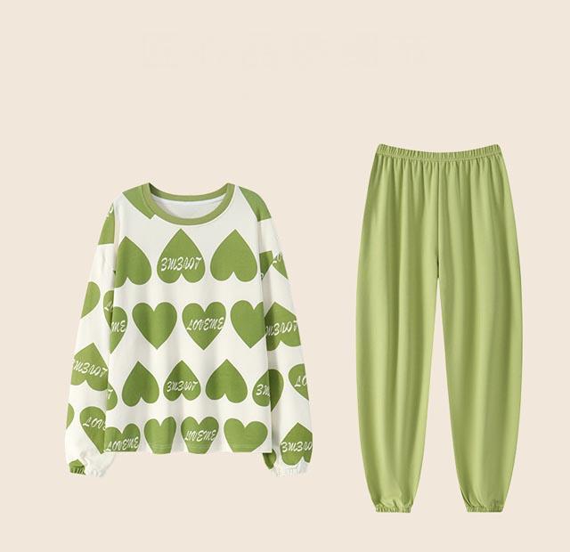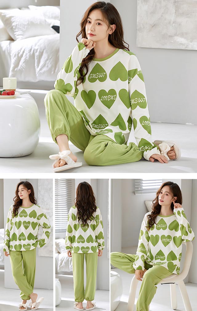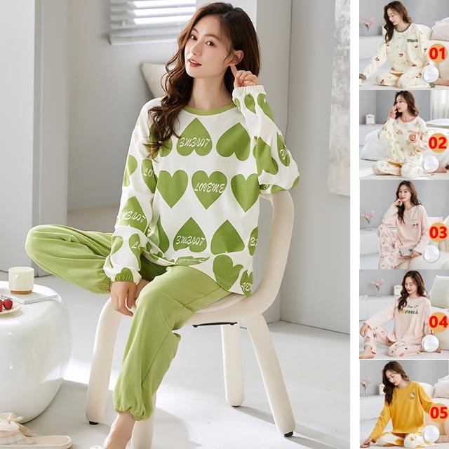 ルームウェア 綿 パジャマ レディース プルオーバータイプ クルーネック 長袖t+長ズボン 2点セット セットアップ かわいい プリンセス風 春秋 ゆったり 部屋着 寝間着 M-3XL/16色