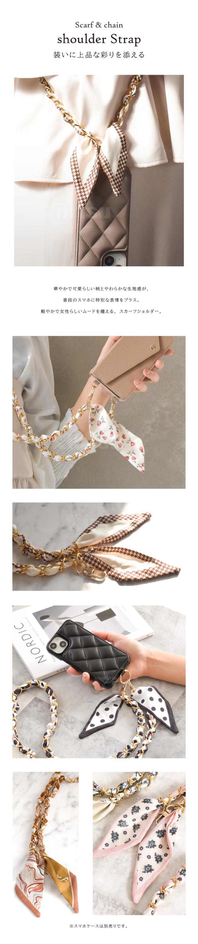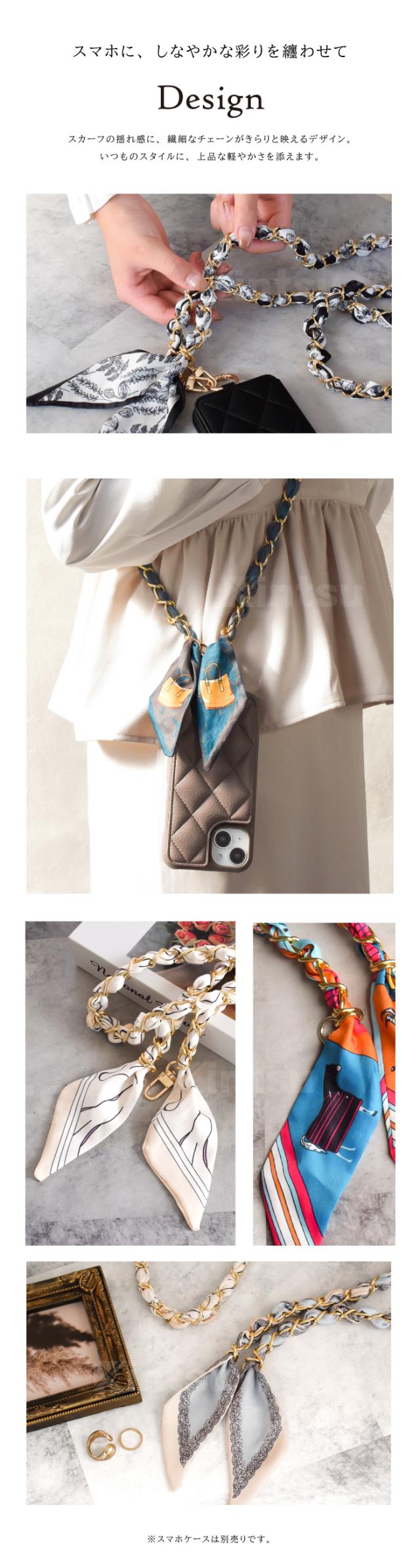 スマホ ストラップ スカーフ&チェーン ショルダーストラップ お洒落 スカーフ チェーン スマホショルダー 携帯ストラップ 落下防止 紛失防止 ホルダー付き 挟むだけ おしゃれ