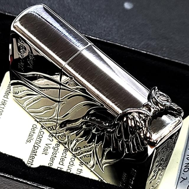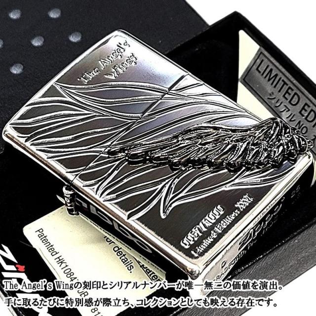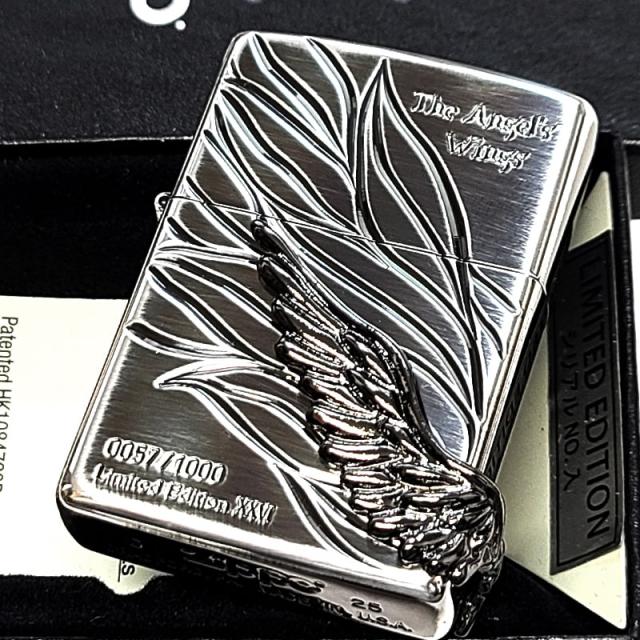 ZIPPO 限定 エンジェルウィング 1000個生産 シルバー燻し ブラックウィングメタル ジッポ 黒銀 2026年シーズン かっこいい 天使の羽 立体メタル 銀いぶし シリアルNo入り おしゃれ 高級 美しい メンズ ギフト プレゼント
