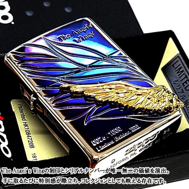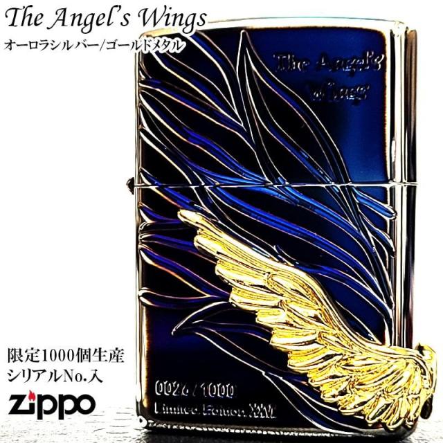 ZIPPO ライター 限定 エンジェルウィング オーロラシルバー 1000個生産 ゴールドウィングメタル 2026年シーズン シリアルNo入り ジッポ 美しい かっこいい 天使の羽 立体メタル おしゃれ 高級 メンズ ギフト プレゼント