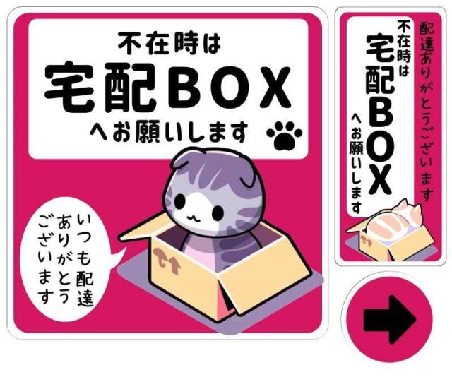 置き配OK、不在時の宅配BOX使用をお願いするステッカーです。大、小、矢印のセットです。