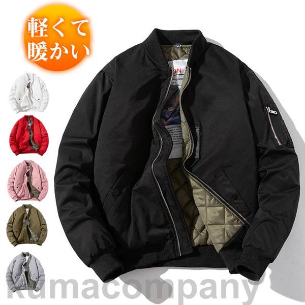 スタジャン メンズ ミリタリージャケット MA-1 フライトジャケット 中綿 ブルゾン 野球服 無地 秋冬 暖かい 通勤 厚手 ゆったり 体型カバー
