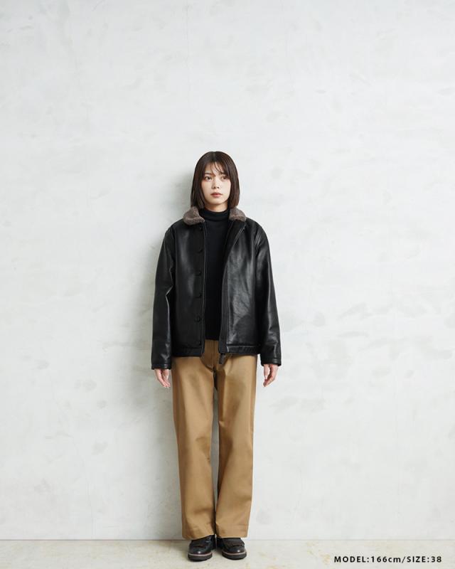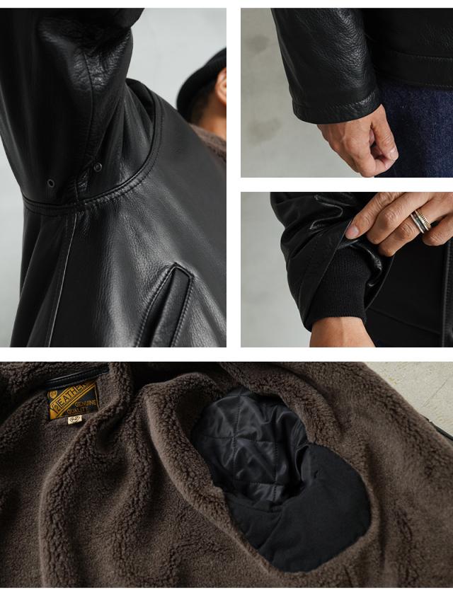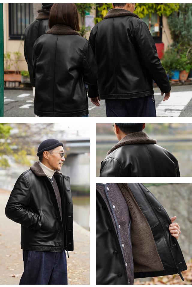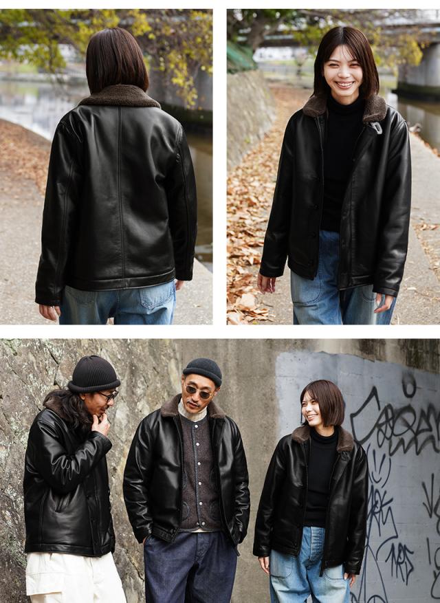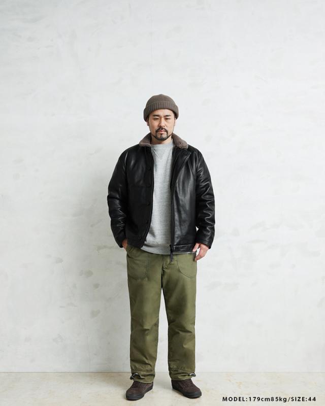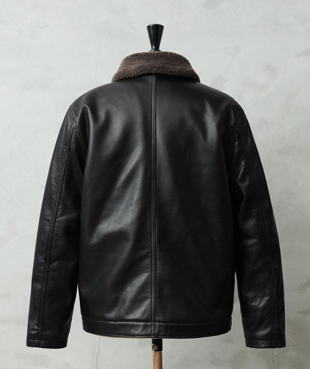 こちらは名作「N-1」をY’2LEATHERが誇る熟練の職人技と上質なステアハイドで仕上げたスペシャルな別注アイテムです。染色には”水染め”という技法を使用しています。専用のドラムの中で水と油と染料を混ぜたものにつけこみ、ゆっくり、しっかり油と色を入れていくことで革はやわらかい仕上がりに。時間と手間がかかりますが、上質な着心地と強度を持ち合わせた最高の一着に仕上がっています。