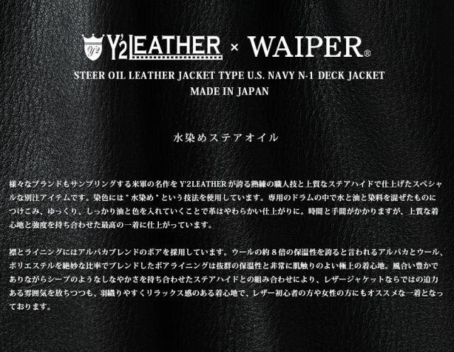 Y’2 LEATHER ワイツーレザー WAIPER別注 ステアオイル レザージャケット TYPE U.S.NAVY N-1 DECK JKT MADE IN JAPAN【Cx】【T】