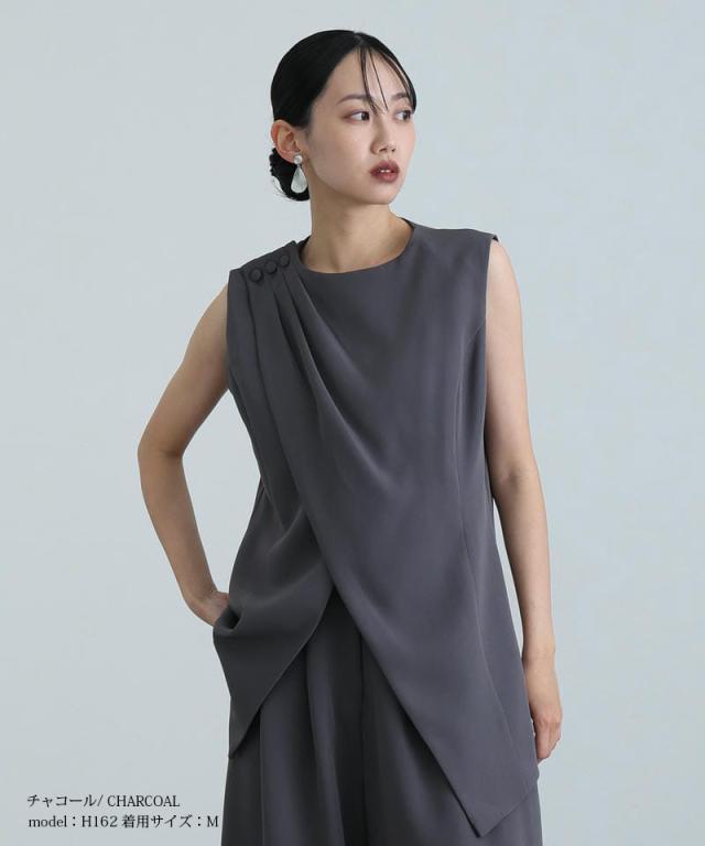 ノースリーブでも上品に着こなせる、計算されたシルエットです。