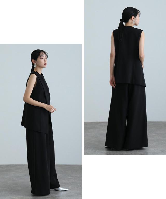 落ち感のあるワイドシルエットが縦ラインを強調し、スタイルアップを演出します。
