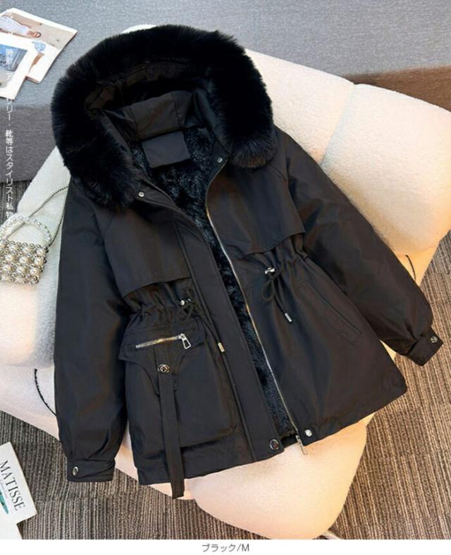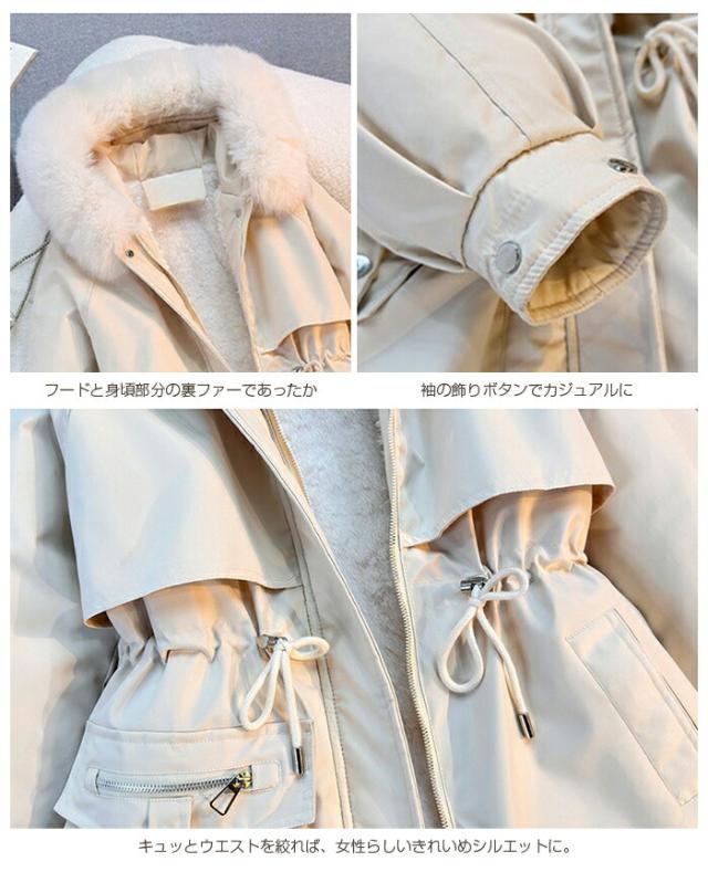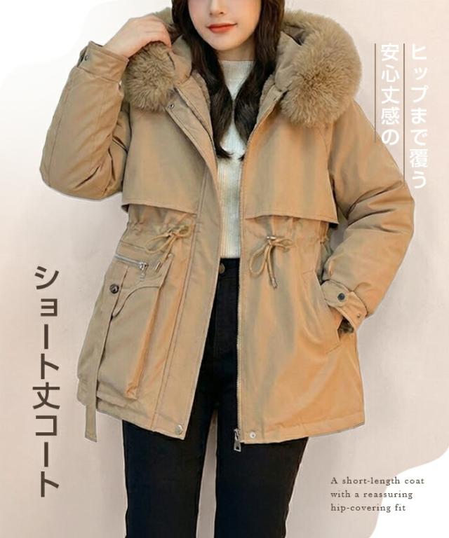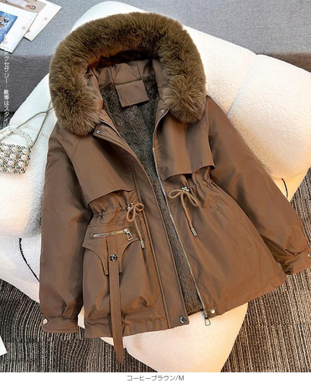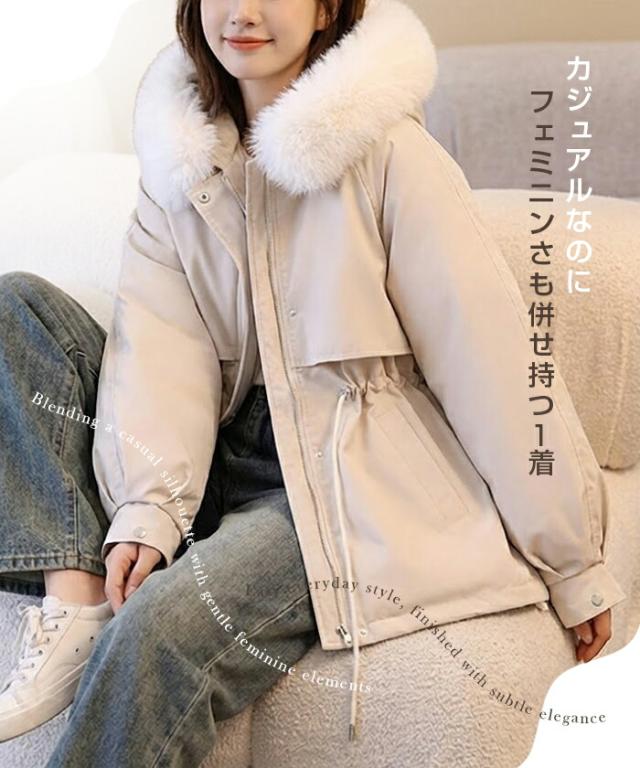 MAX1,500円OFFクーポン配布中!コート 中綿 裏ファー ファー付コート ショート丈 防寒仕様 ボアライナー付き モッズ風 ウエストドロスト フェミニン 【 ボアライナー付きショート丈コート 】 ダークエンジェル