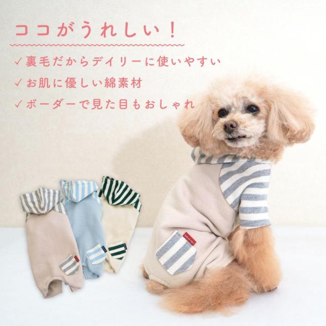犬 服 冬 雪 スノー 秋 エコ コットン 裏毛 ボーダー フード 付き パーカー つなぎ ダックス 小型犬用 ロンパース 抜け毛対策 長袖 チワワ トイプードル ミニチュアダックス ダックスフンド 犬の服 猫の服 カバーオール