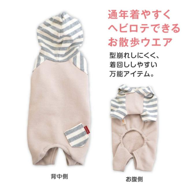 いつものお散歩・お出かけなど、デイリーに使いやすい裏毛のつなぎ。