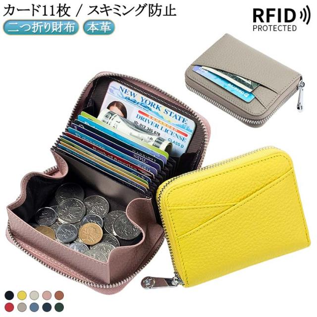 ケース レディース スキミング防止 財布 二つ折り box型小銭入れ カード L字ファスナー ミニ財布 コンパクト RFID 薄い財布 二つ折り財布 小さい財布 本革 二つ折り財布 レディース ポーチ スキミング防止 じゃばら カードケース レザー 牛革