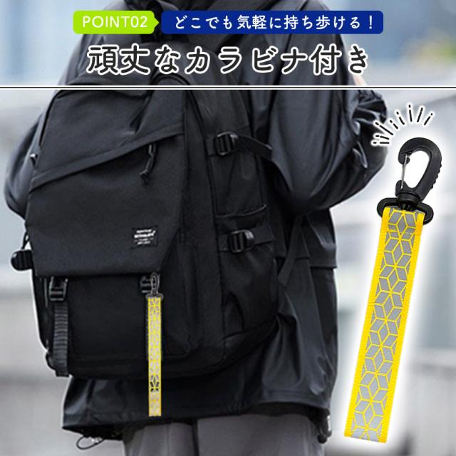 反射ストラップ 反射 キーホルダー リフレクター 反射材 反射板 カラビナ付き バンド 夜間 ライト 光る ナイトマーカー 通勤 通学 自転車 フック シンプル アクセサリー スポーツ 交通安全 鞄 バッグ ランニング チャーム 夜道 防犯 グッズ 子ども 子供 大人 キッズ おしゃれ