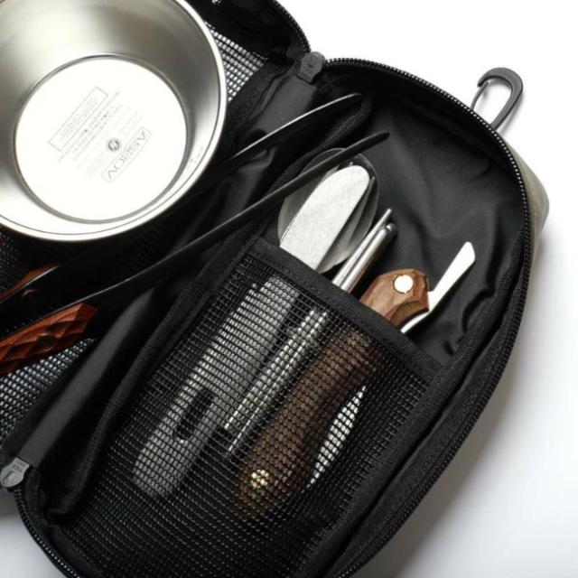 カトラリーをはじめ、アウトドア小物を収納。洗ったカトラリーをそのまま収納し、ドライネットとしても使用可能。