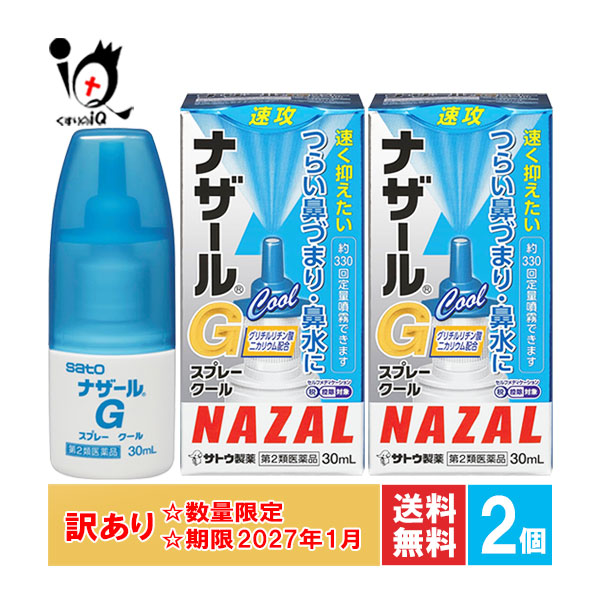 訳あり 【第2類医薬品】★ナザールGスプレークール 30mL×2個セット【佐藤製薬】【訳あり商品 使用期限2027年1月】速く抑えたいつらい鼻づまり・鼻水に クールタイプ 鼻炎用点鼻薬 ナファゾリン塩酸塩配合 花粉症 くしゃみ