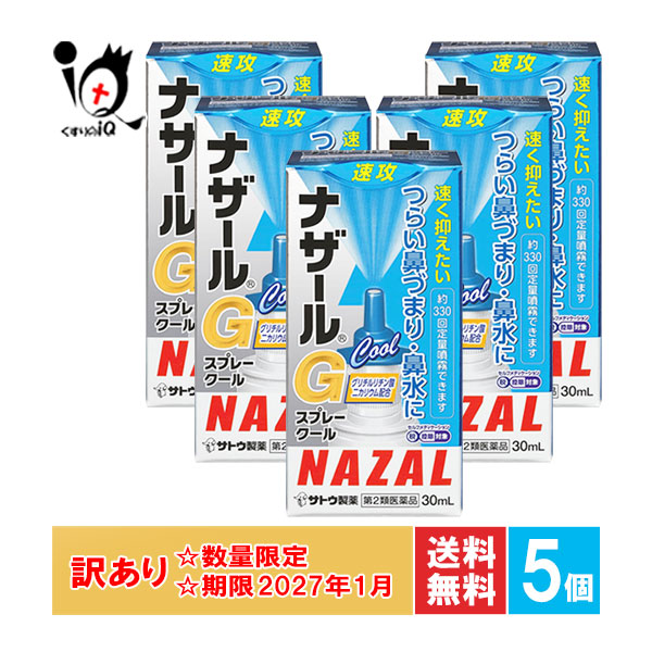 訳あり 【第2類医薬品】★ナザールGスプレークール 30mL×5個セット【佐藤製薬】【訳あり商品 使用期限2027年1月】速く抑えたいつらい鼻づまり・鼻水に クールタイプ 鼻炎用点鼻薬 ナファゾリン塩酸塩配合 花粉症 くしゃみ