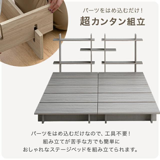 ステージベッド 宮棚 フレームのみ 宮棚付きベッド ベッド ベット ステージタイプ ベッドフレーム ベットフレーム ワイド ローベッド ローベット フロアベッド 低い 木 木目 すのこベッド