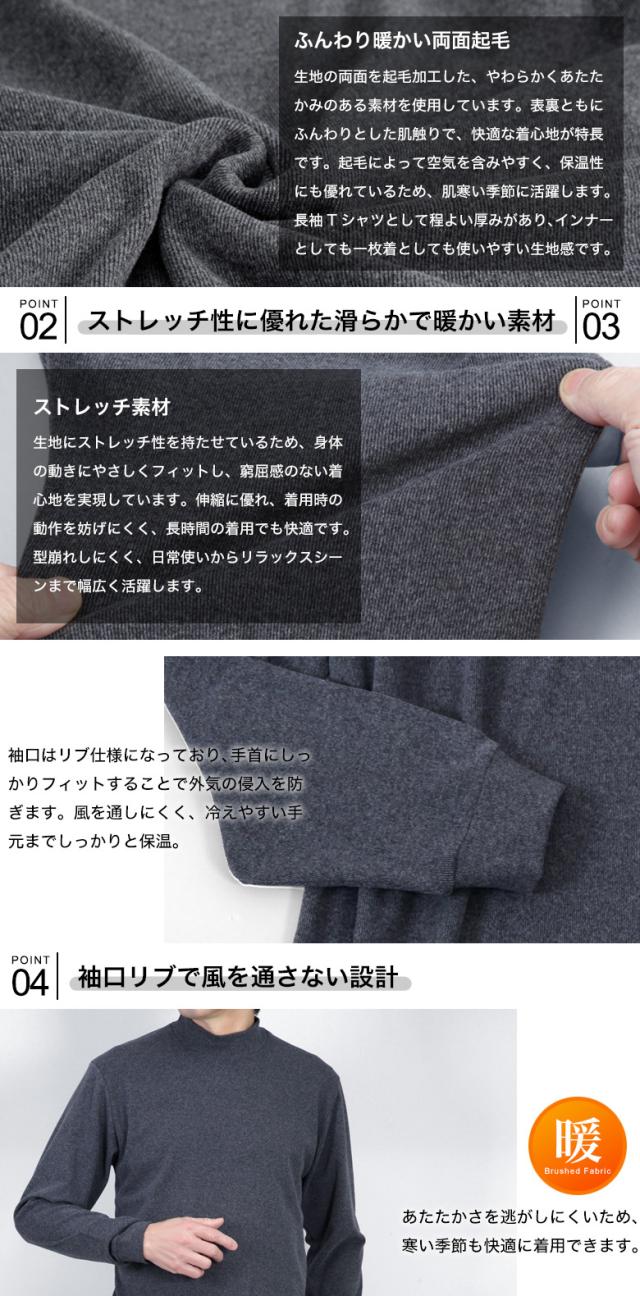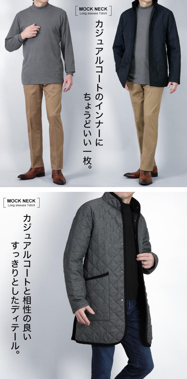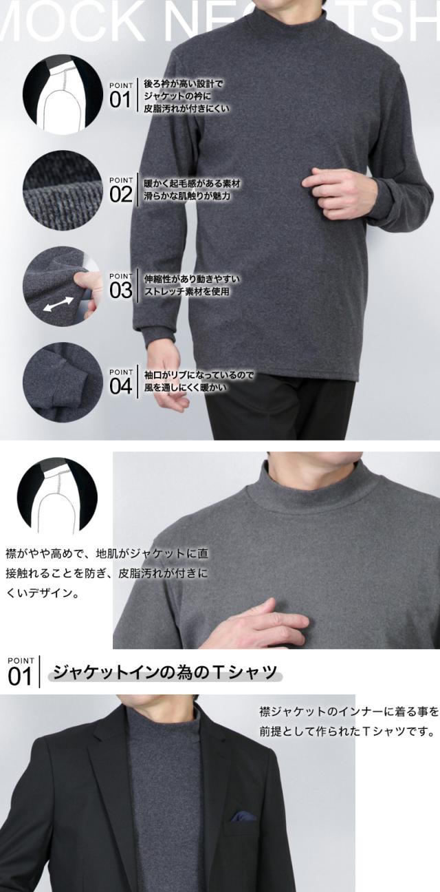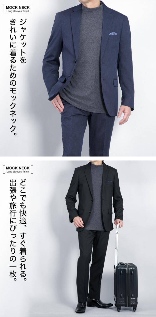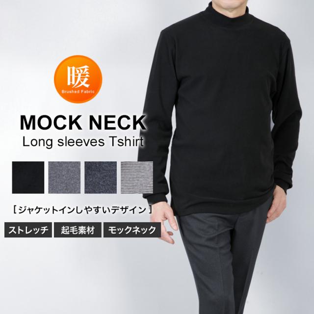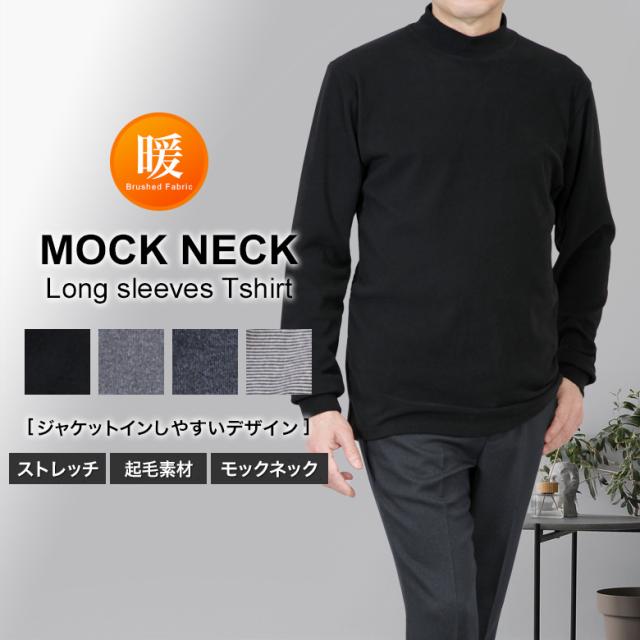 スムース 両面起毛 長袖 Tシャツ メンズ ジャケット インナーTシャツ 後ろ衿高め ストレッチ 秋冬春 プルオーバー モックネック ビジネス カジュアル ビズカジ スポーツ リモートワーク