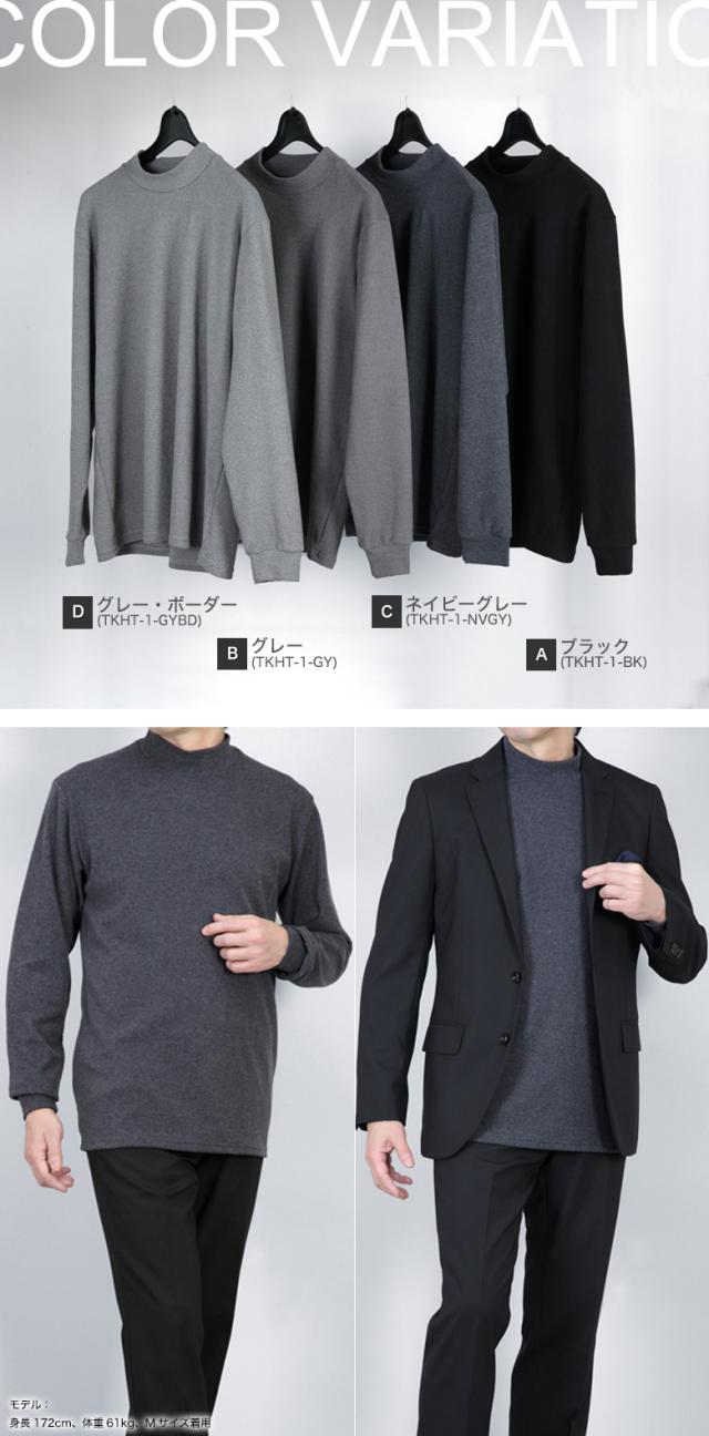 | ▼モックネック 【A】ブラック(TKHT-1-BK) 【B】グレー(TKHT-1-GY) 【C】ネイビーグレー(TKHT-1-NVGY) 【D】グレー・ボーダー(TKHT-1-GYBD) |