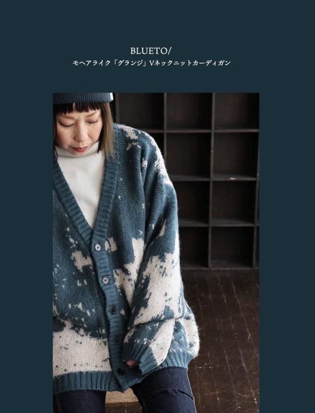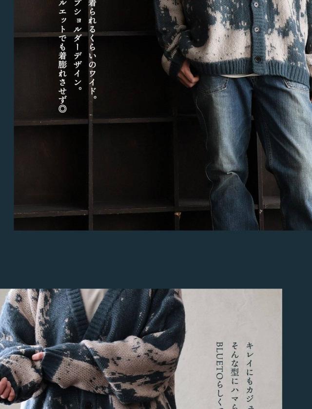 カーディガン カーデ ニット ニットカーデ メンズ レディース Vネック 総柄 起毛 暖かい 軽い ワイド カジュアル お洒落 秋 冬 BLUETO ブルート