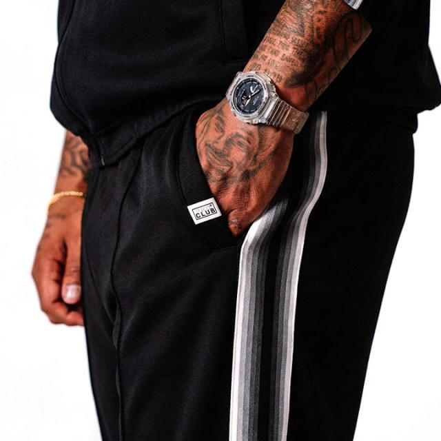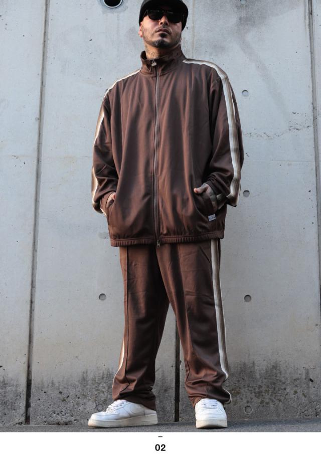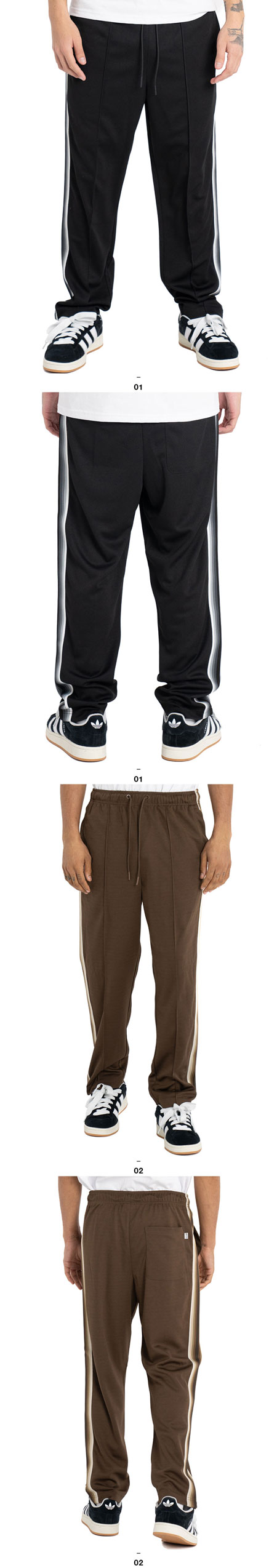 クラシックな配色とスポーティーなジャージで仕上げた、バギータイプのトラックパンツ。