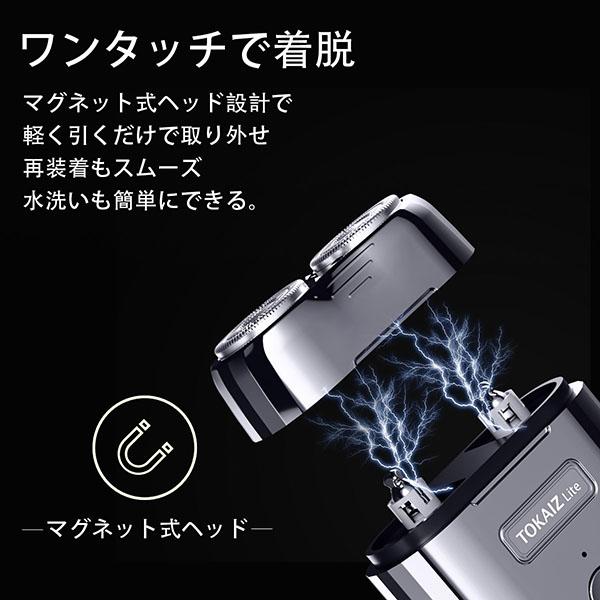 TOKAIZ Lite シェーバー 髭剃り 電気シェーバー 電気かみそり 超軽量 ミニ 小型 2枚刃 磁石式ヘッド ワンタッチ着脱 水洗い 2段階調整 コンパクト かみそり 出張 旅行 ギフト LSV-D01