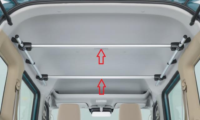 エブリイワゴン・バン(DA17W・DA17V)のルーム内用の純正マルチルーフバー(サイド)に加装着して、機能を発展させるセンターバーです。