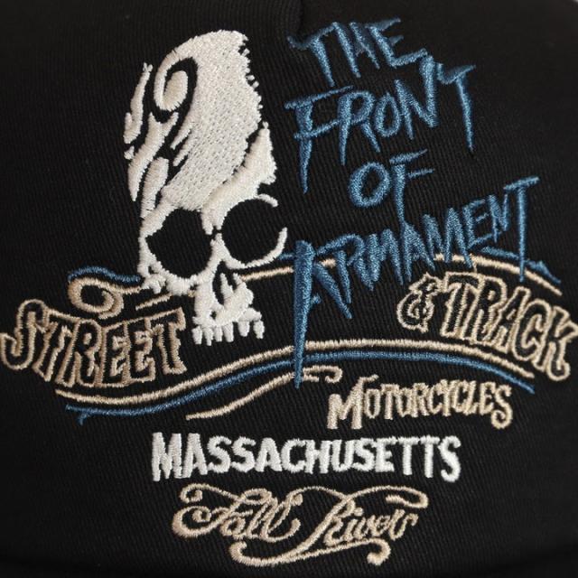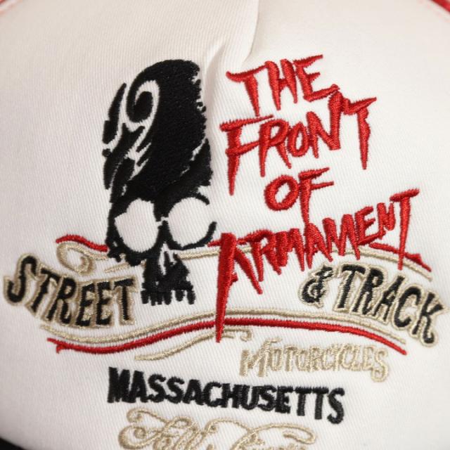 前頭部ドクロと『THE FRONT OF ARMAMENT』『STREET & TRACK』ロゴ・後頭部のT.F.O.Aロゴが刺繍!