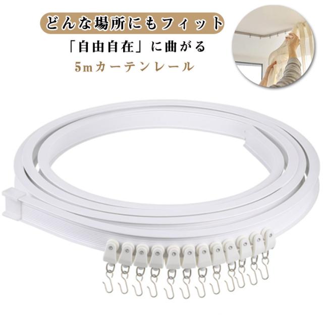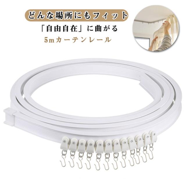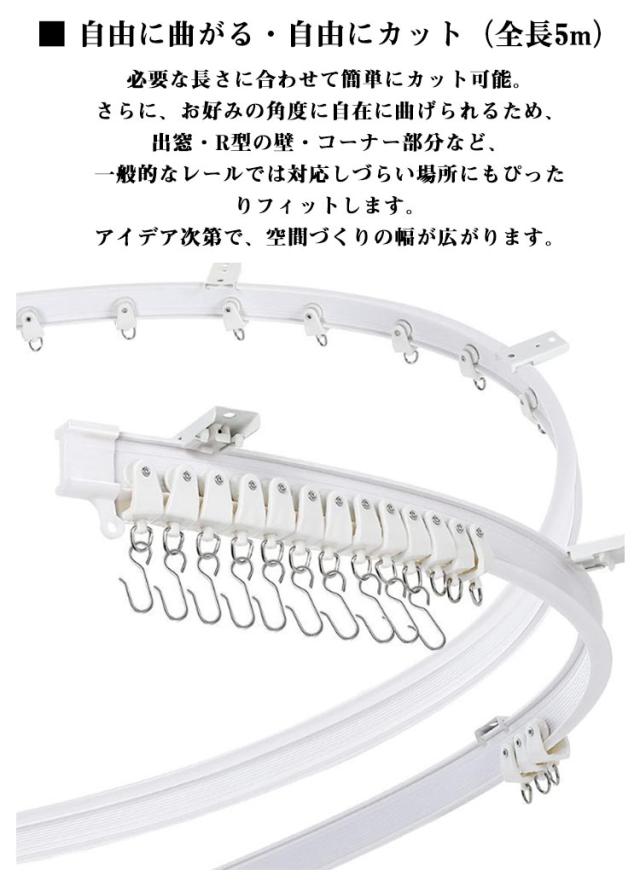 カーテンレール 白 取付簡単 シンプル 天井付け 曲げ可能 長さ調整 ランナー カット可能 頑丈 静音性 間仕切り カーブ窓 I型レール 曲げレール ホワイト 曲がるカーテンレール 目隠し インテリア 5m リビング 小窓 寝室用 出窓用 子供部屋 DIY